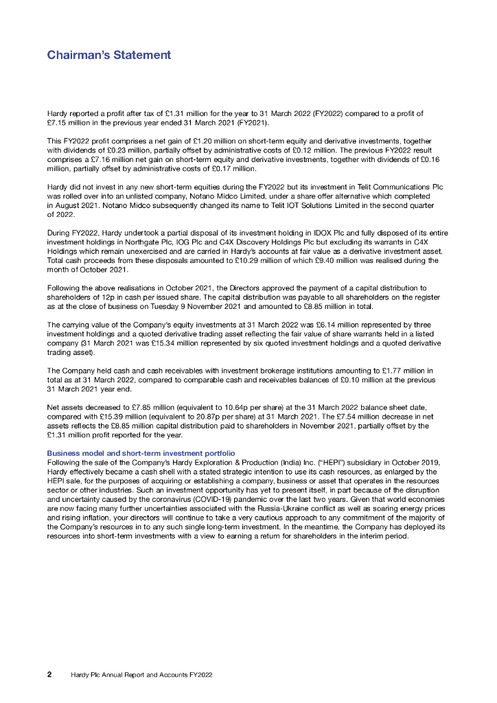 Hardy Oil & Gas PLC(HDY.L)2022财年年度报告(英文版).pdf