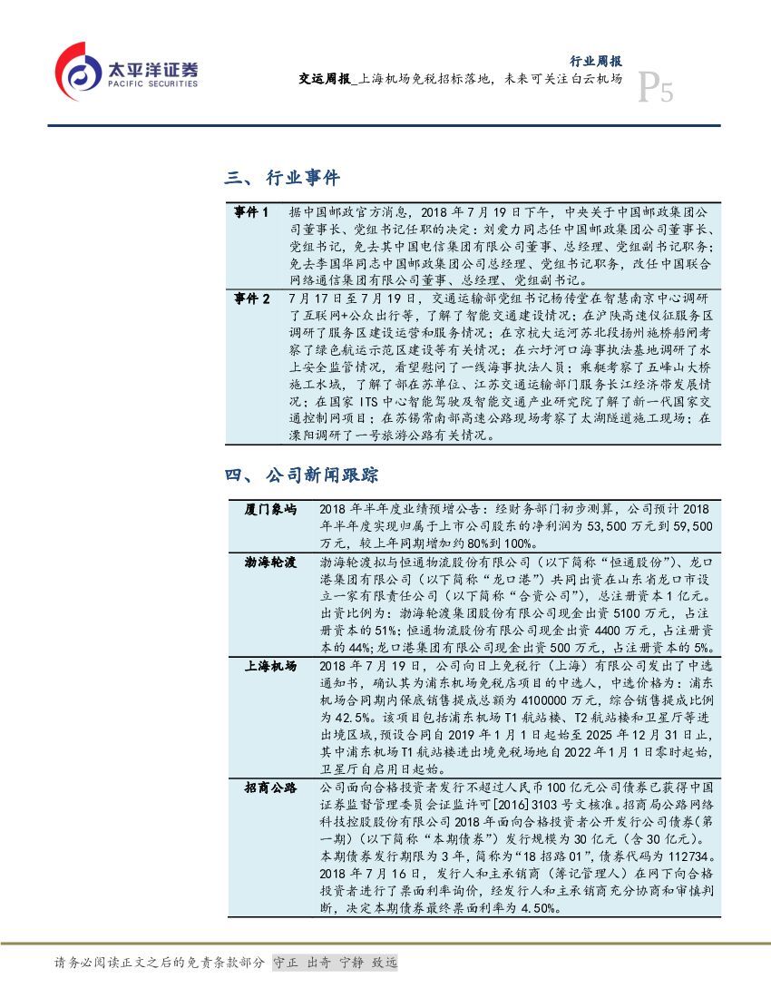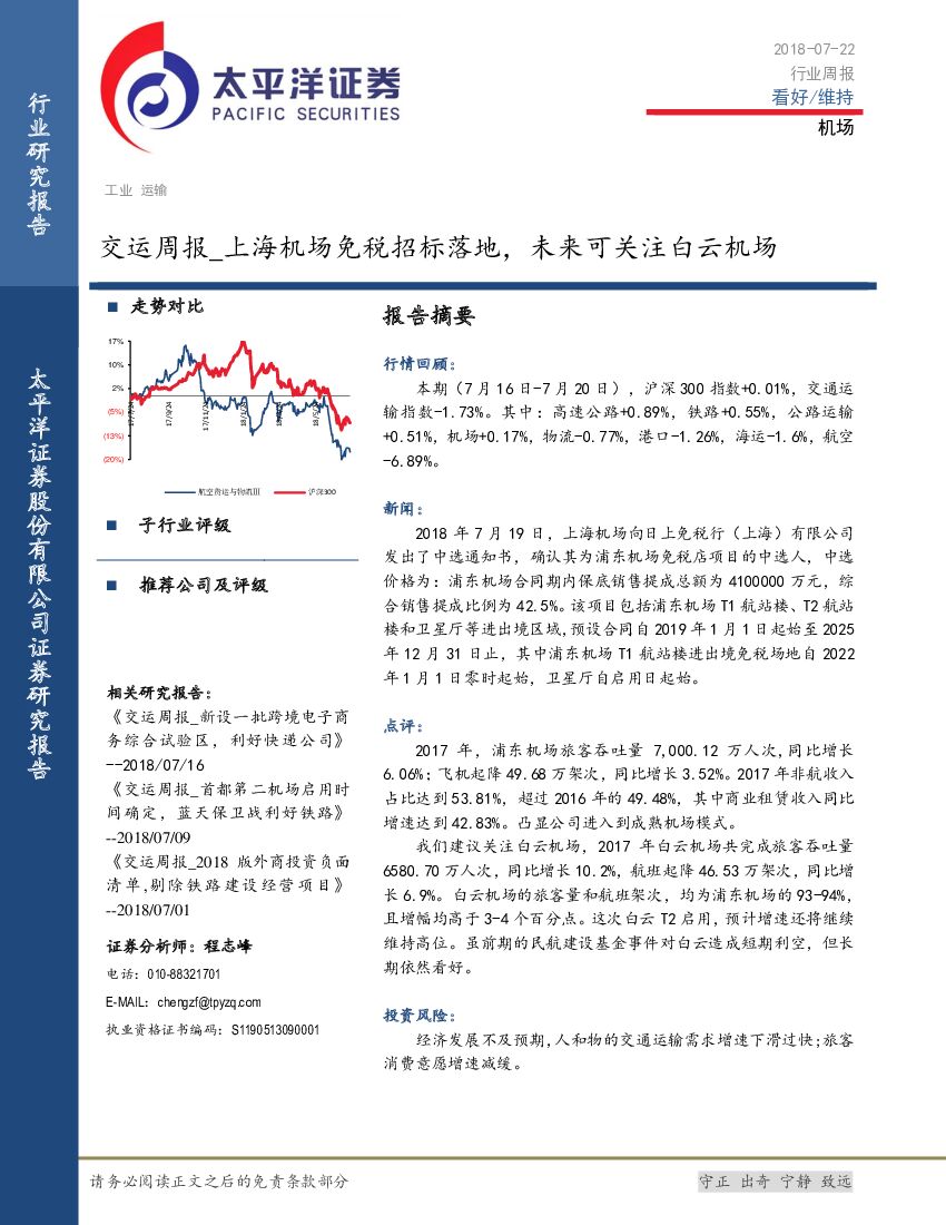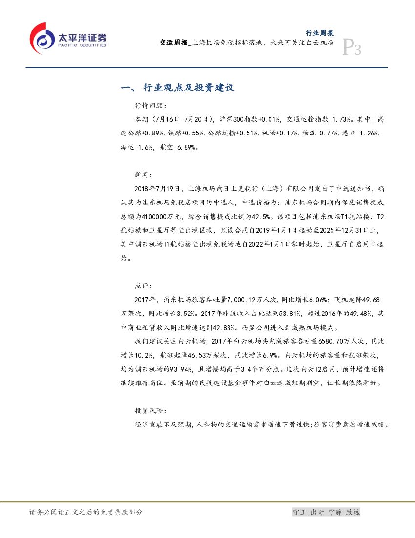 太平洋证券:交运周报:上海机场免税招标落地,未来可关注白云机场.pdf
