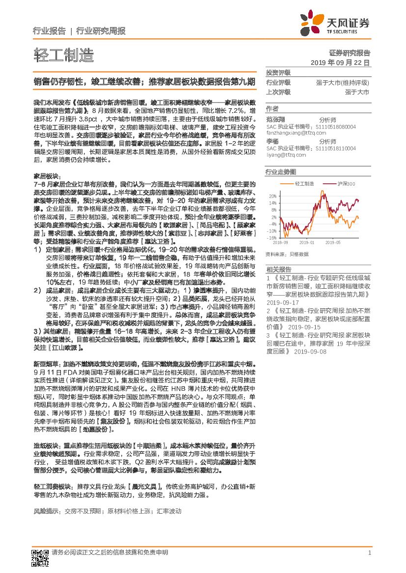 天风证券:轻工制造行业研究周报:销售仍存韧性,竣工继续改善;推荐家居板块数据报告第九期.pdf