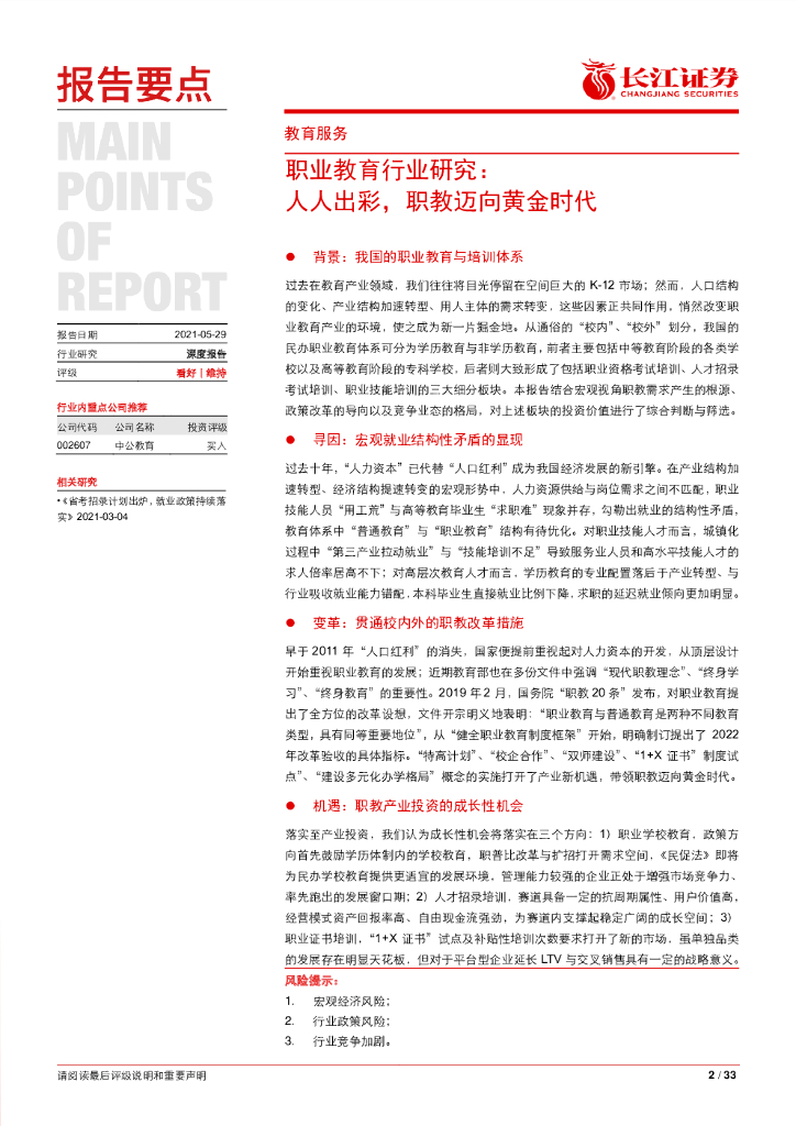 长江证券:职业教育行业研究:人人出彩,职教迈向黄金时代.pdf