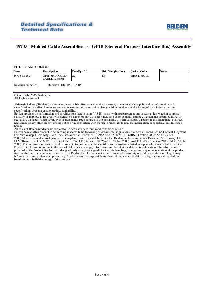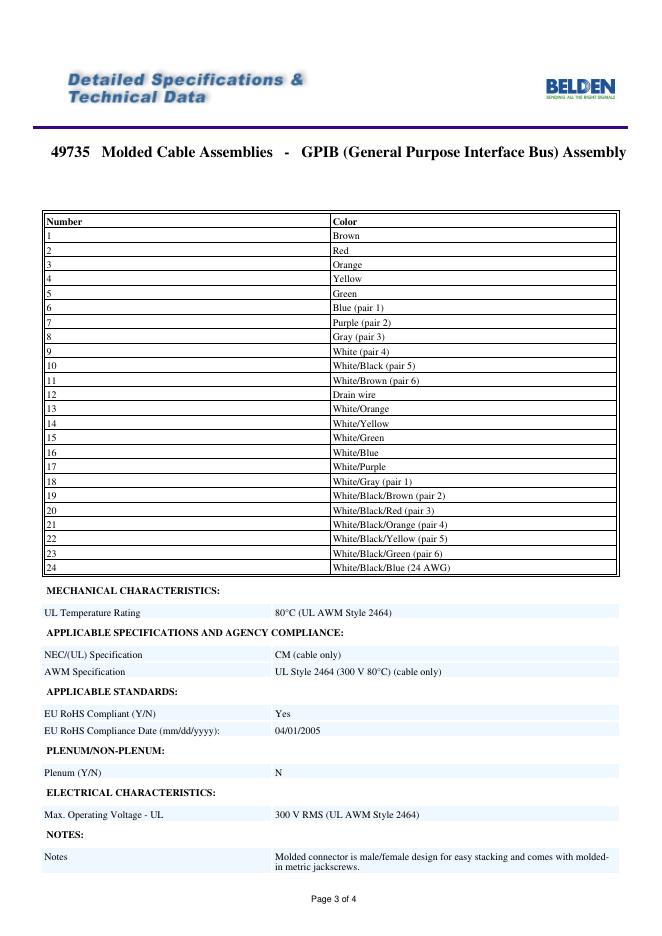 BELDEN 49735 Molded Cable Assemblies - GPIB (General Purpose Interface Bus) Assembly 数据手册.pdf