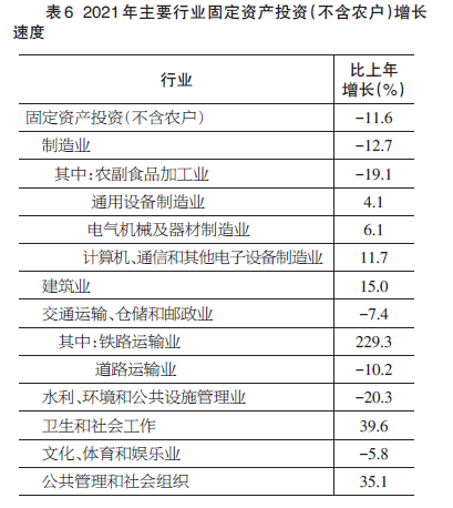 全年固定资产投资(不含农户)比上年下降11.6%。