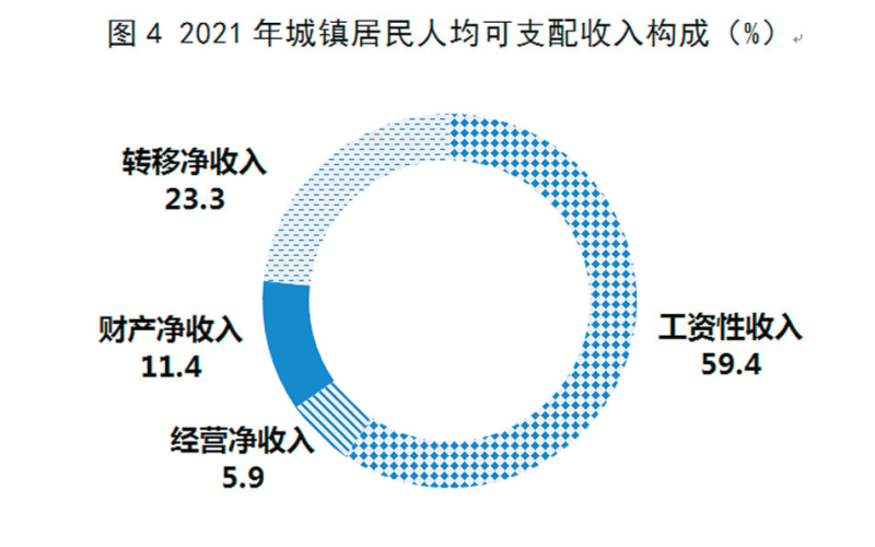 城镇居民人均可支配收入中,工资性收入27872元,比上年增长6.6%;经营净收入2790元,增长2.0%;财产净收入5344元,增长15.3%;转移净收入10925元,增长7.1%。