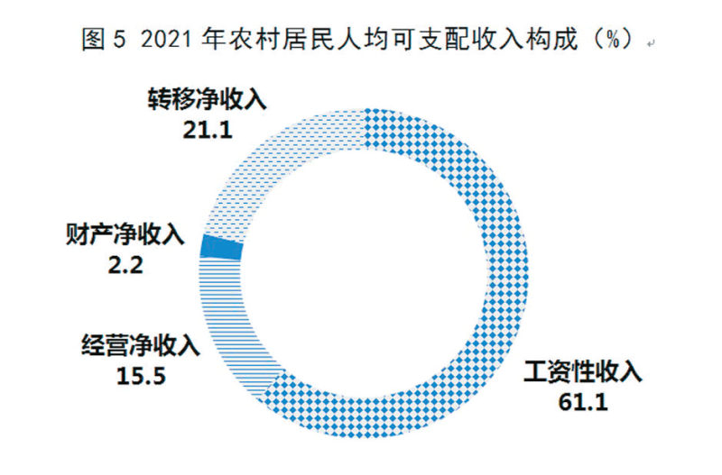 农村居民人均可支配收入中,工资性收入10632元,比上年增长15.2%;经营净收入2702元,增长1.9%;财产净收入384元,增长1.4%;转移净收入3671元,增长5.1%。