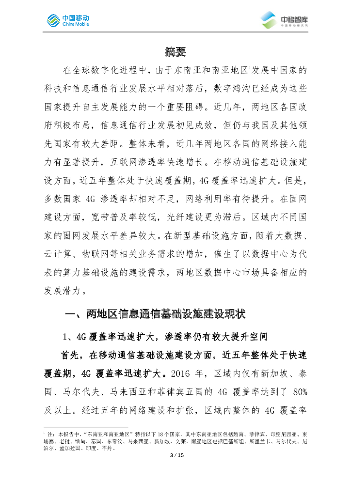 中国移动研究院:东南亚和南亚信息通信基础设施发展现状和趋势.pdf