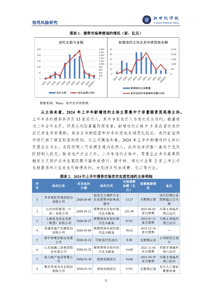 新世纪评级:新增违约集中于出险房企和退市主体 信用风险总体平稳——2024年上半年债券市场信用风险分析及展望.pdf
