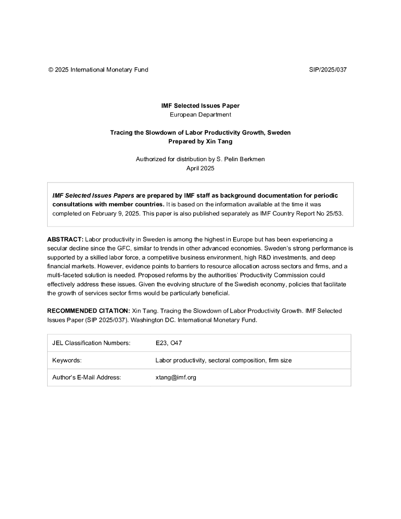 国际货币基金组织:追踪劳动生产率增长放缓:瑞典(英文版).pdf