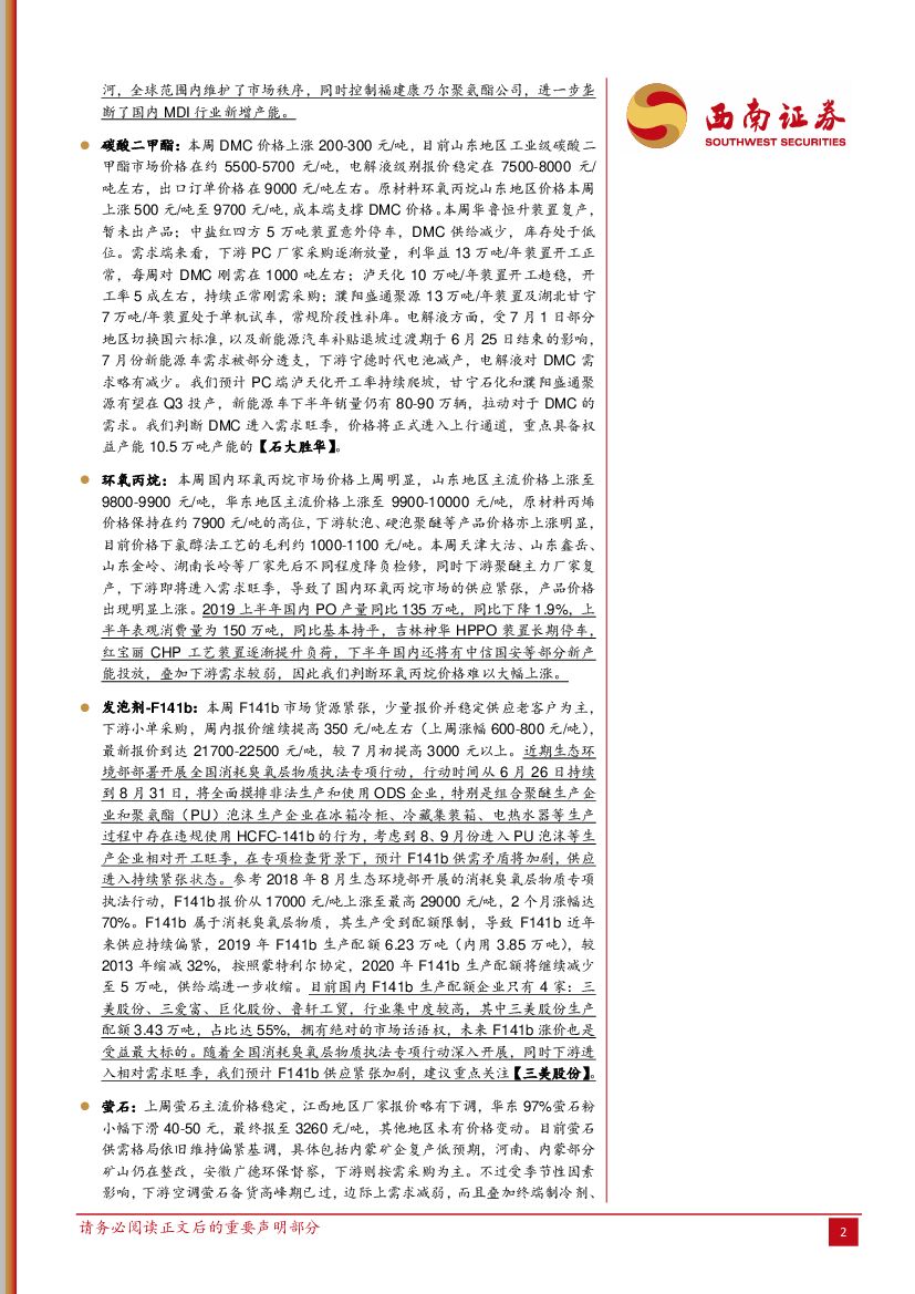 西南证券:化工行业周观点:有机硅产品价格大幅反弹,MDI、碳酸二甲酯价格涨幅明显.pdf