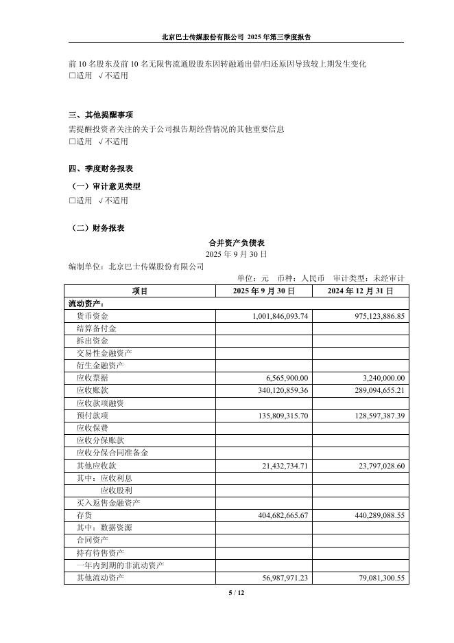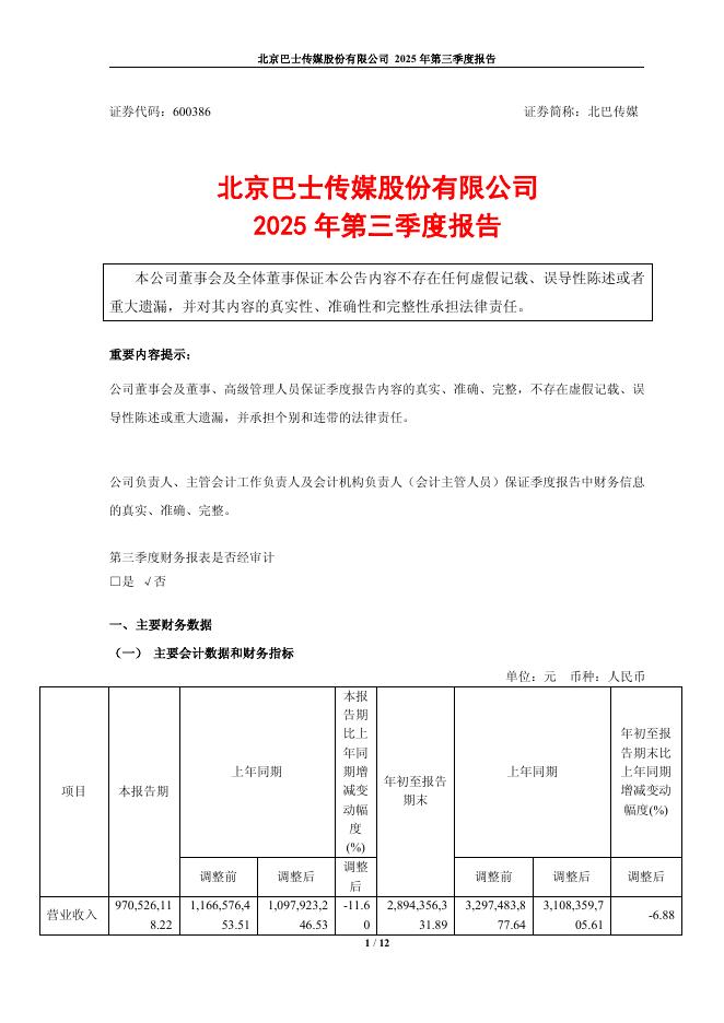 600386-北巴传媒:北京巴士传媒股份有限公司2025年第三季度报告.pdf
