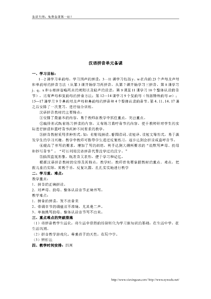 人教版一年级上《汉语拼音》导学案(全集,31页).doc