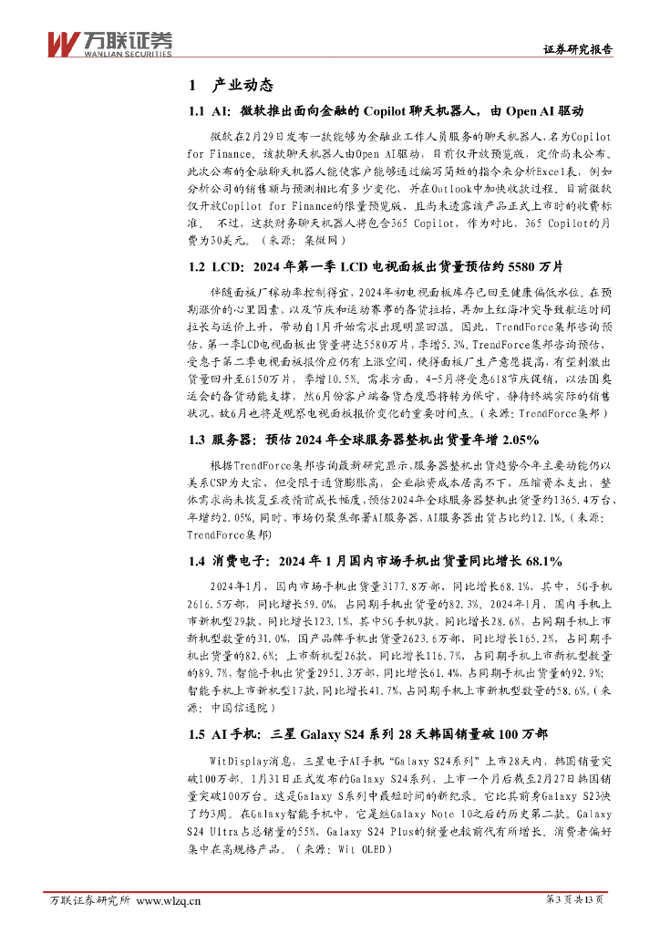 万联证券:电子行业周观点:微软Copilot持续更新,AI手机有望拉动换机周期.pdf