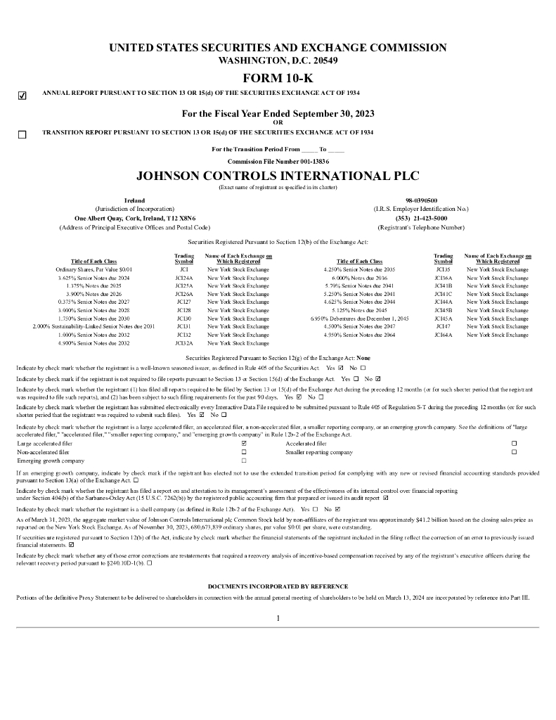 Johnson Controls International plc(JCI)2023财年年度报告(英文版).pdf