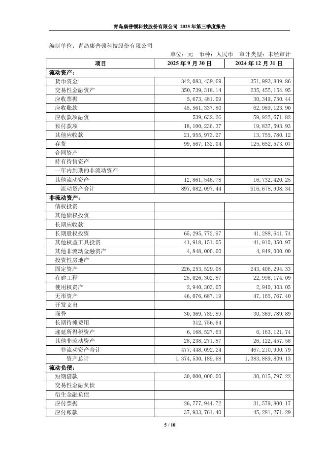 603798-康普顿:青岛康普顿科技股份有限公司2025年第三季度报告.pdf