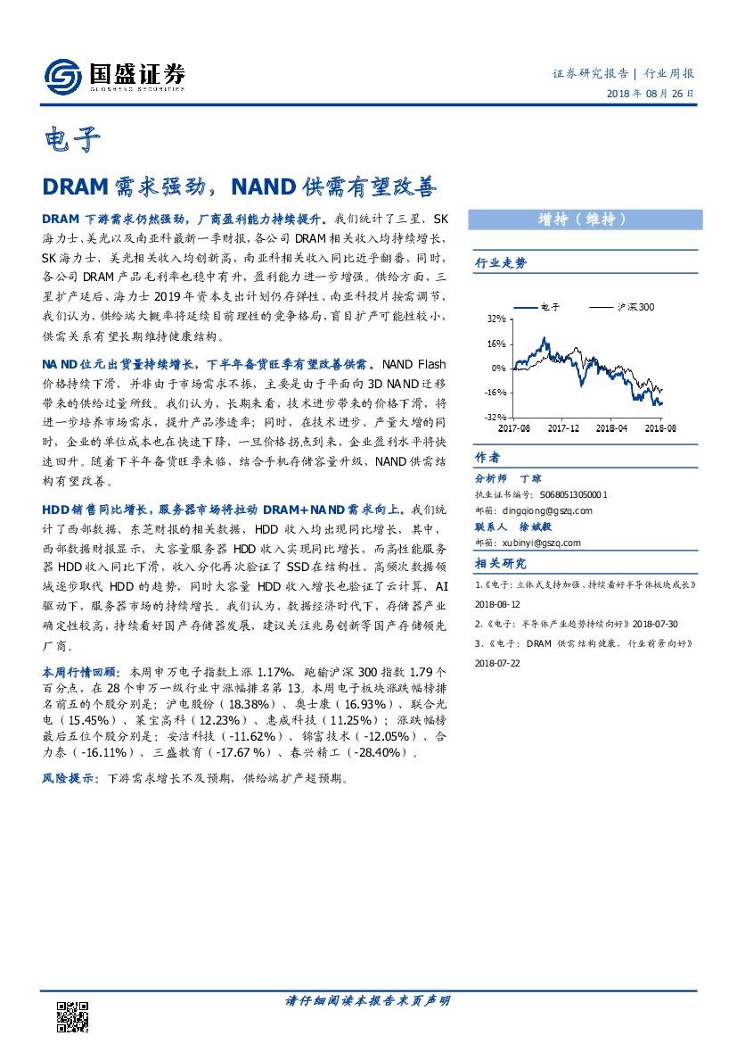 国盛证券:电子行业周报:DRAM需求强劲,NAND供需有望改善.pdf