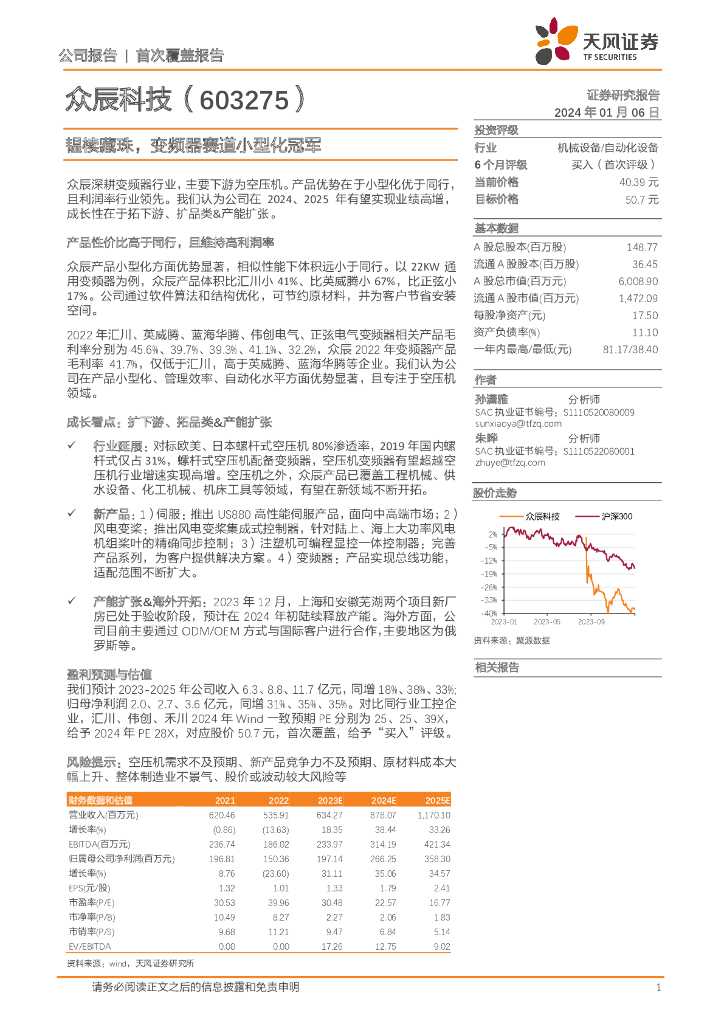天风证券:众辰科技(603275)-韫椟藏珠,变频器赛道小型化冠军.pdf