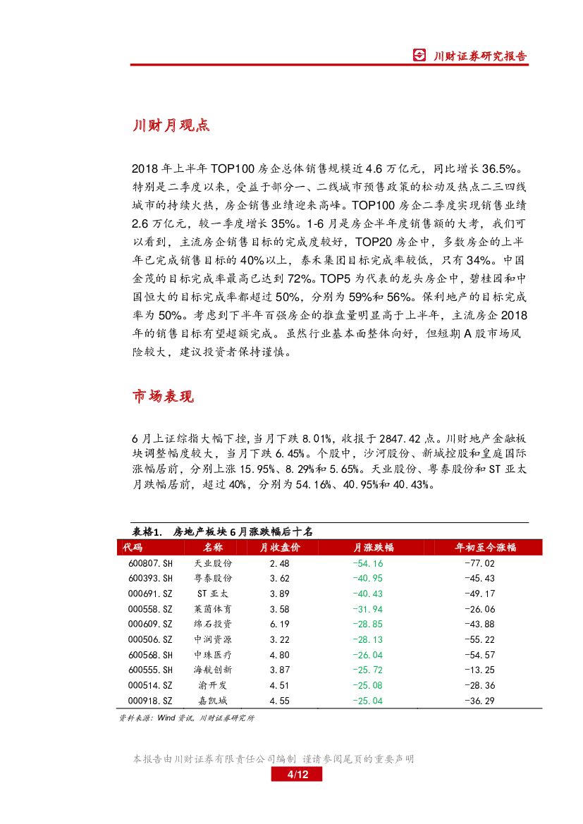 川财证券:房地产月报:主流房企上半年销售目标完成率较高.pdf