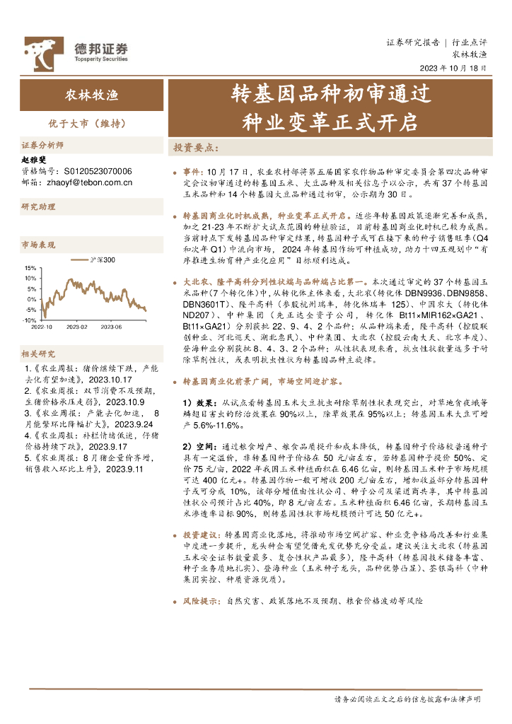 德邦证券:农林牧渔行业点评:转基因品种初审通过 种业变革正式开启.pdf
