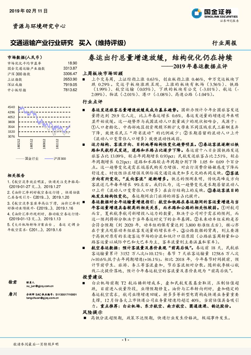 国金证券:交通运输产业行业研究周报:2019年春运数据点评:春运出行总量增速放缓,结构优化仍在持续.pdf