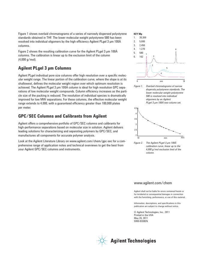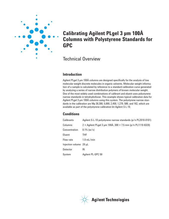 Agilent Technologies Calibrating Agilent PLgel 3 μm 100A Columns with Polystyrene Standards for GPC 技术手册.pdf