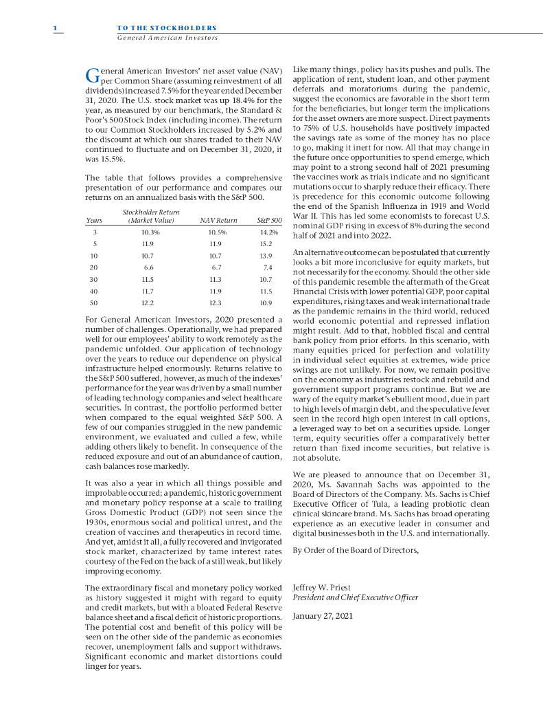 General American Investors Company, Inc.(GAM)2020财年年度报告(英文版).pdf