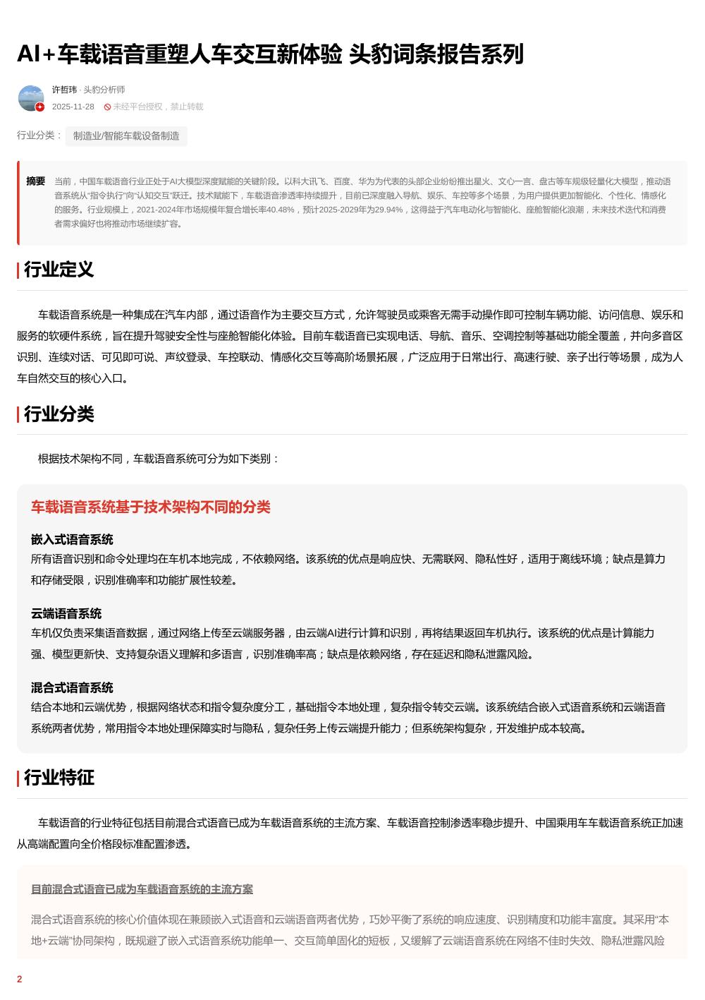 头豹研究院:AI+车载语音重塑人车交互新体验头豹词条报告系列.pdf