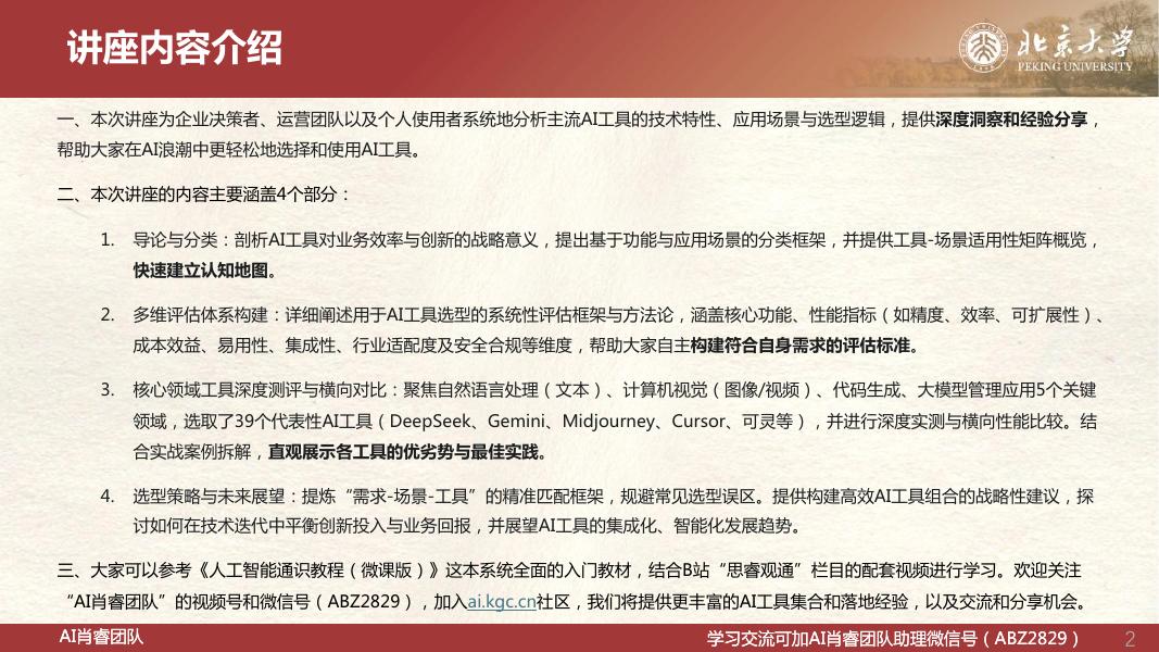 北京大学:2025年AI工具深度测评与选型指南v1.0(5大类别 39个工具 92个实例测评).pdf