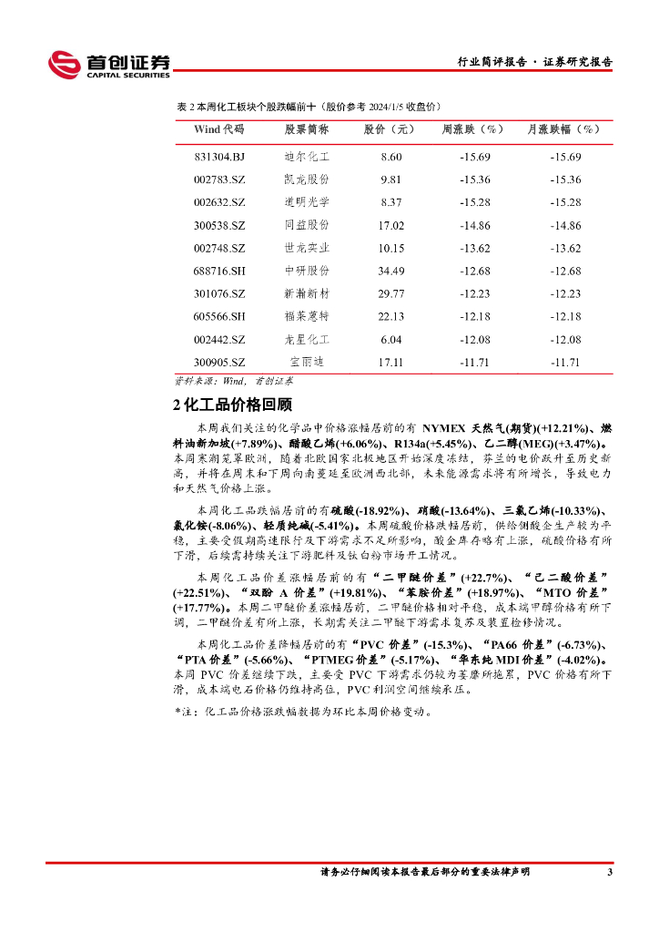 首创证券:基础化工行业简评报告:天然气价格涨幅居前,荣盛石化拟投资675亿元建设金塘新材料项目.pdf