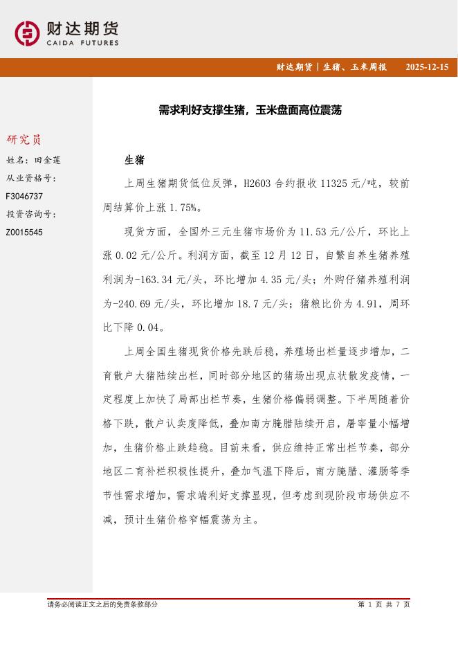 财达期货:20251215需求利好支撑生猪,玉米盘面高位震荡.pdf