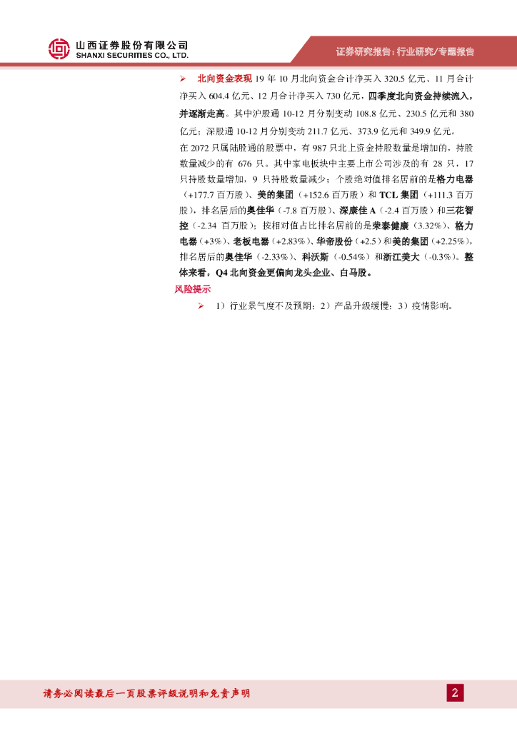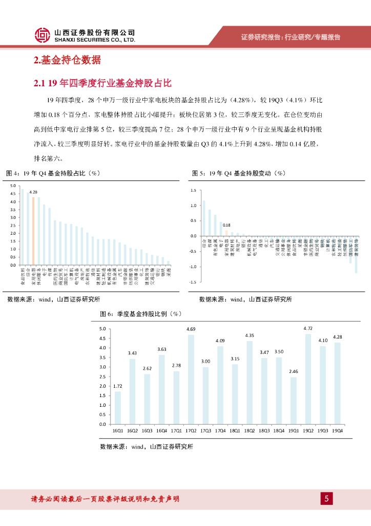 山西证券:19Q4家电行业资金仓位变动研究:Q4家电行业基金持仓比例环比小幅提升.pdf