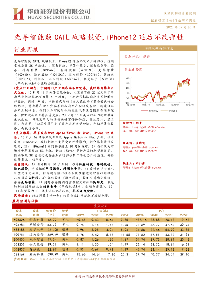 华西证券:机械行业周报:先导智能获CATL战略投资,iPhone12延后不改弹性.pdf