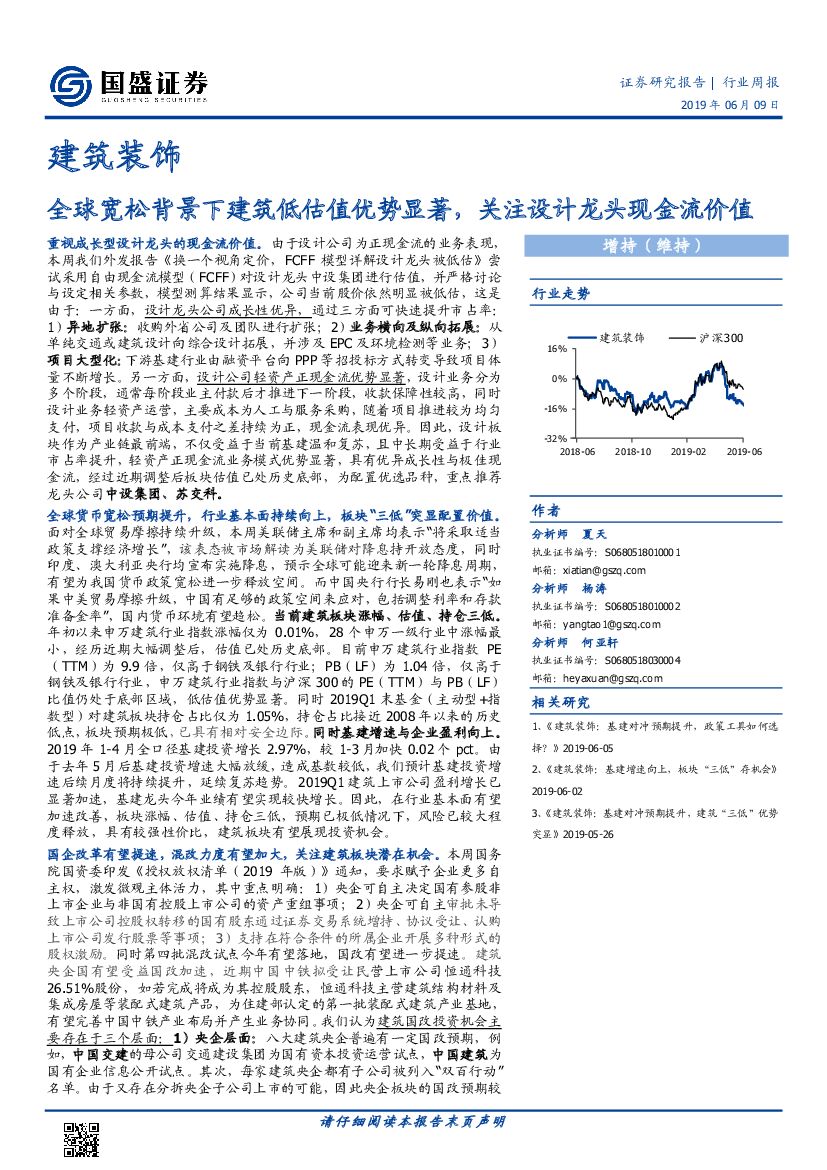 国盛证券:建筑装饰行业周报:全球宽松背景下建筑低估值优势显著,关注设计龙头现金流价值.pdf