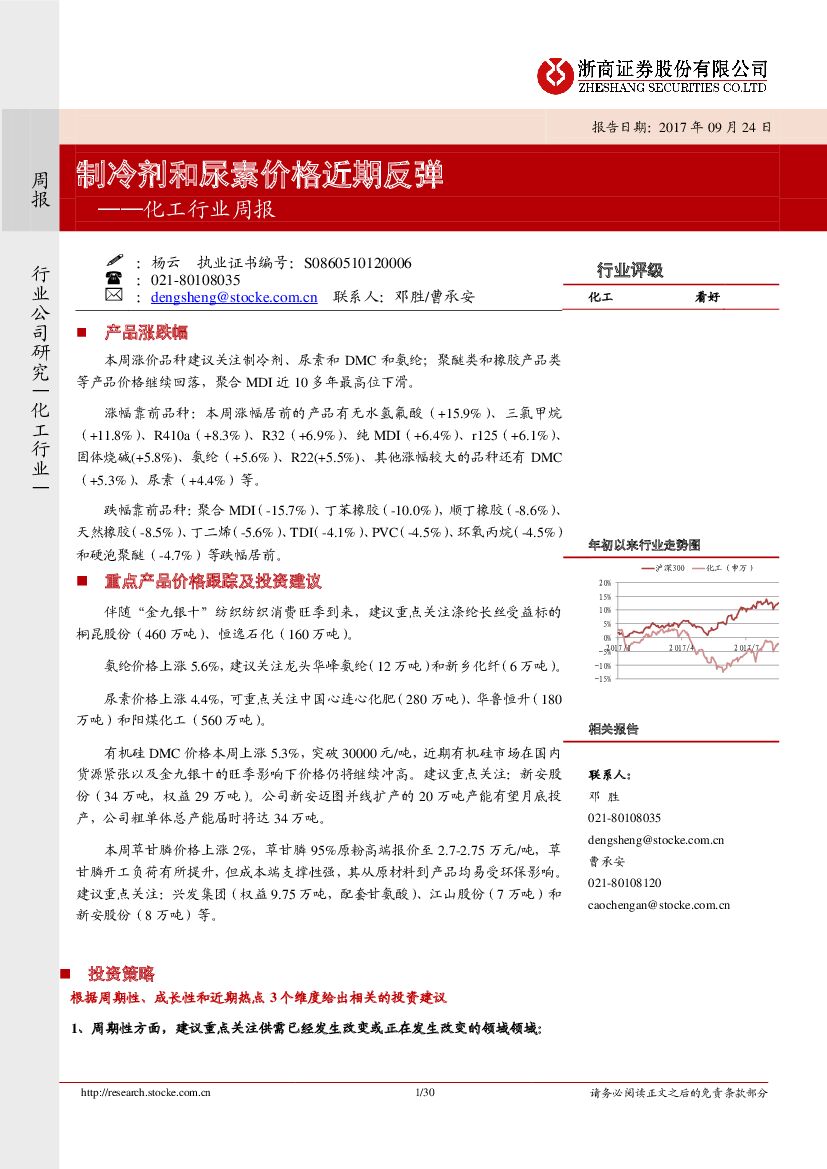 浙商证券:化工行业周报:制冷剂和尿素价格近期反弹.pdf