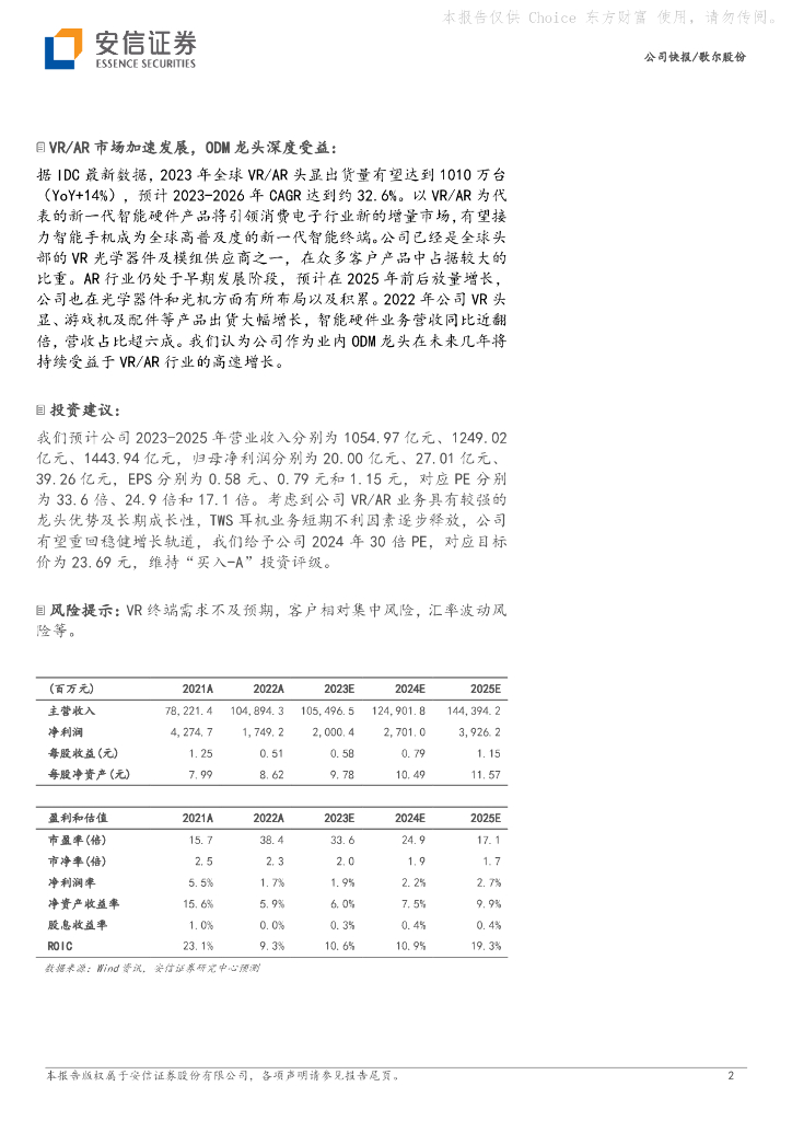 安信证券:歌尔股份(002241)-23Q1环比扭亏,智能硬件业务引领长期成长.pdf