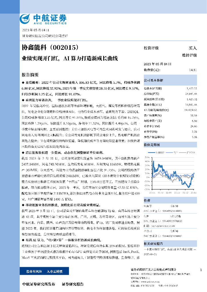 中航证券:协鑫能科(002015)-业绩实现开门红,AI算力打造新成长曲线.pdf