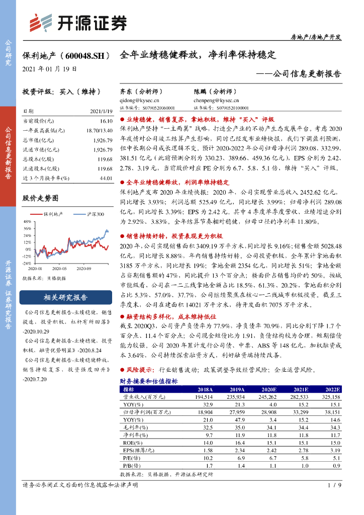开源证券:保利地产(600048)-公司信息更新报告:全年业绩稳健释放,净利率保持稳定.pdf