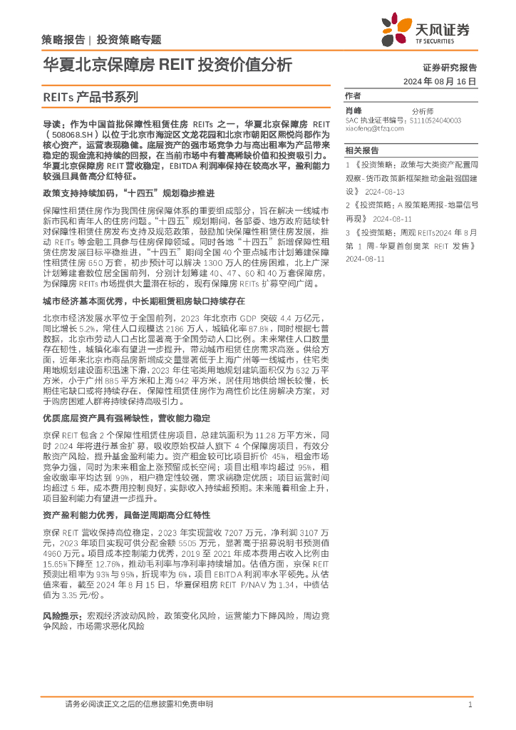 天风证券:REITs产品书系列:华夏北京保障房REIT投资价值分析.pdf