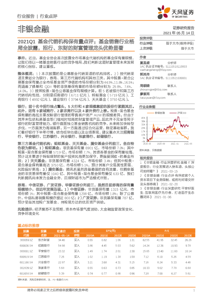 天风证券:非银金融行业点评:2021Q1基金代销机构保有量点评:基金销售行业格局全披露,招行、东财的财富管理龙头优势显著.pdf