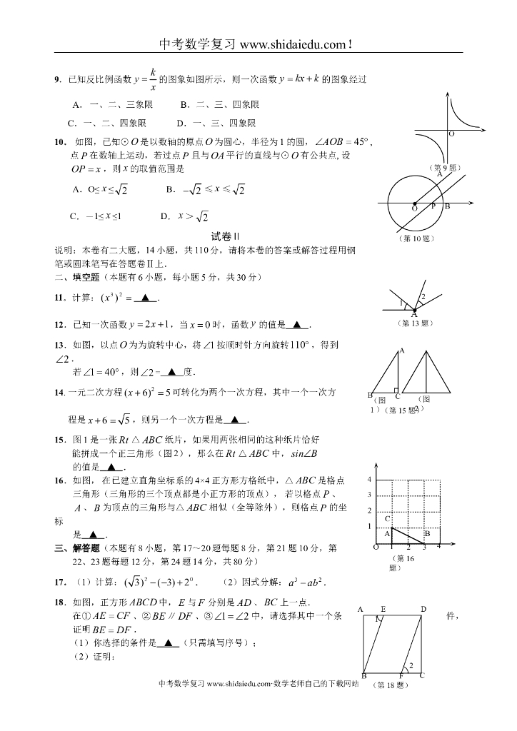 中考数学试卷精选合辑(补充)52之16-初中毕业生学业考试数学试卷及参考答案.doc