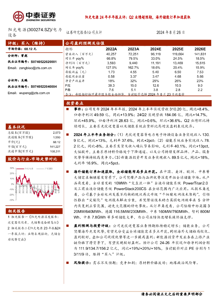 中泰证券:阳光电源24年半年报点评:Q2业绩超预期,海外储能订单加速获取.pdf