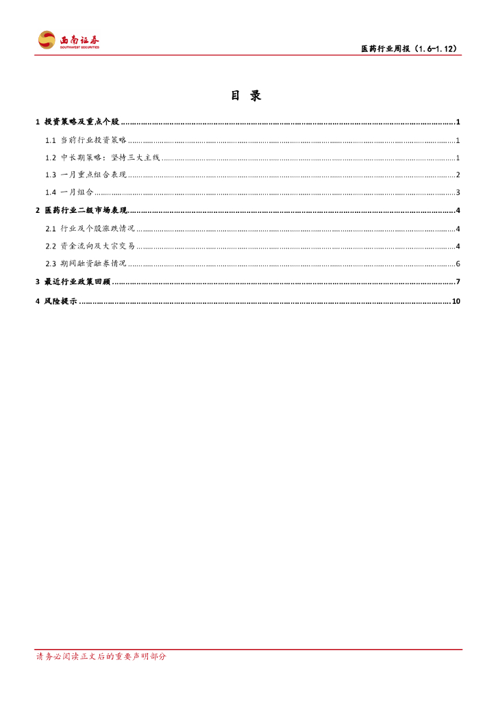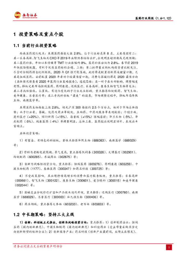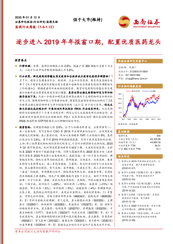 西南证券:医药行业周报:逐步进入2019年年报窗口期,配置优质医药龙头.pdf