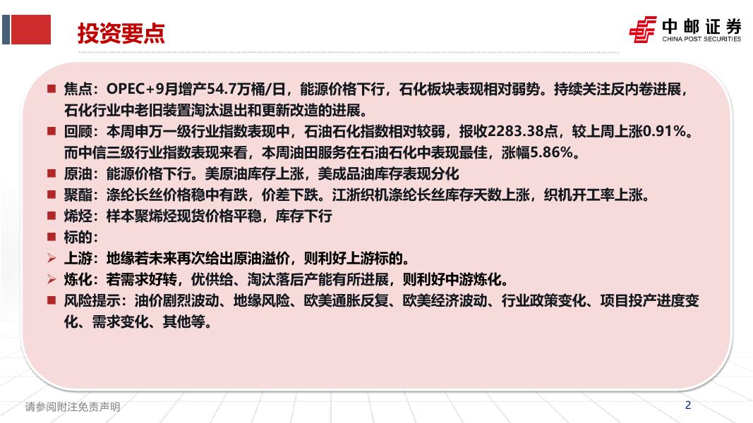 中邮证券:石化行业周报:OPEC+增产策略延续,石化板块相对表现偏弱.pdf
