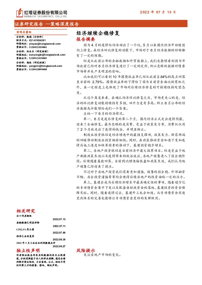 红塔证券:策略深度报告:经济继续企稳修复.pdf