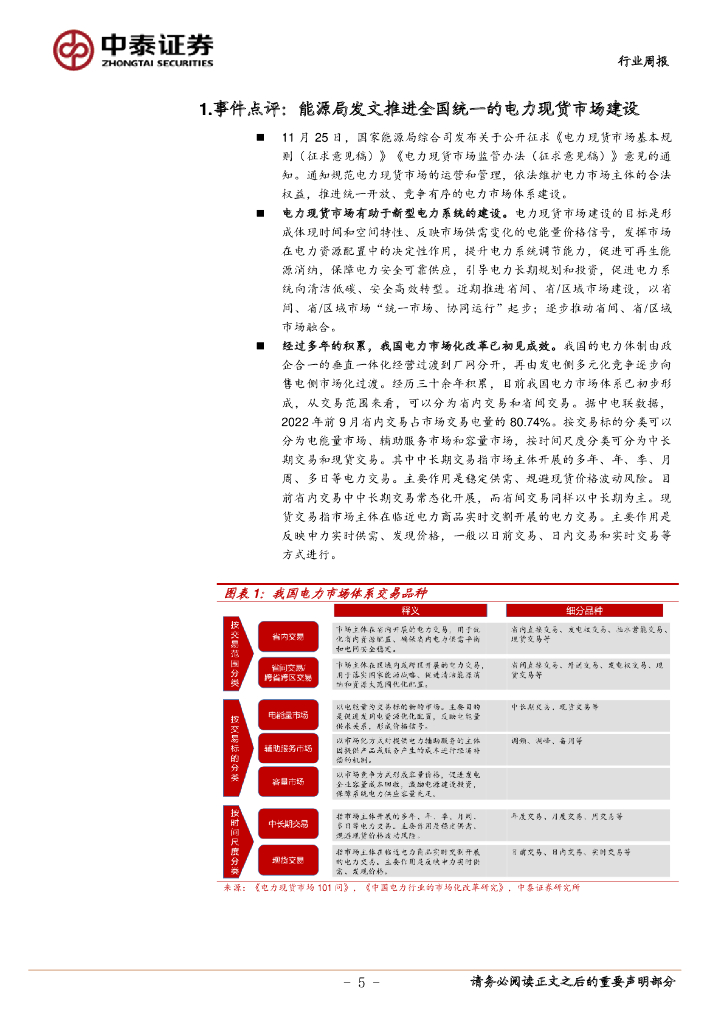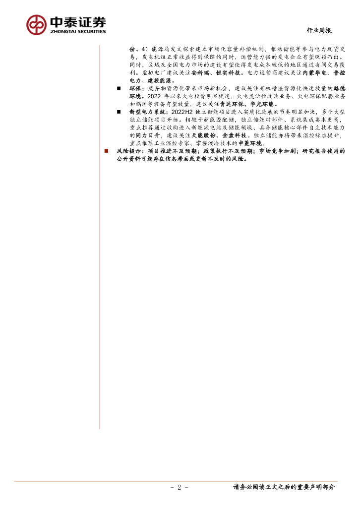 中泰证券:环保及公用事业行业周报:能源局发文探索建立市场化容量补偿机制,推动储能等参与电力现货交易.pdf