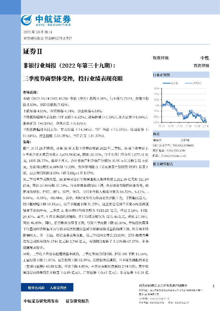 中航证券:非银行业周报(2022年第三十九期):三季度券商整体受挫,投行业绩表现亮眼.pdf