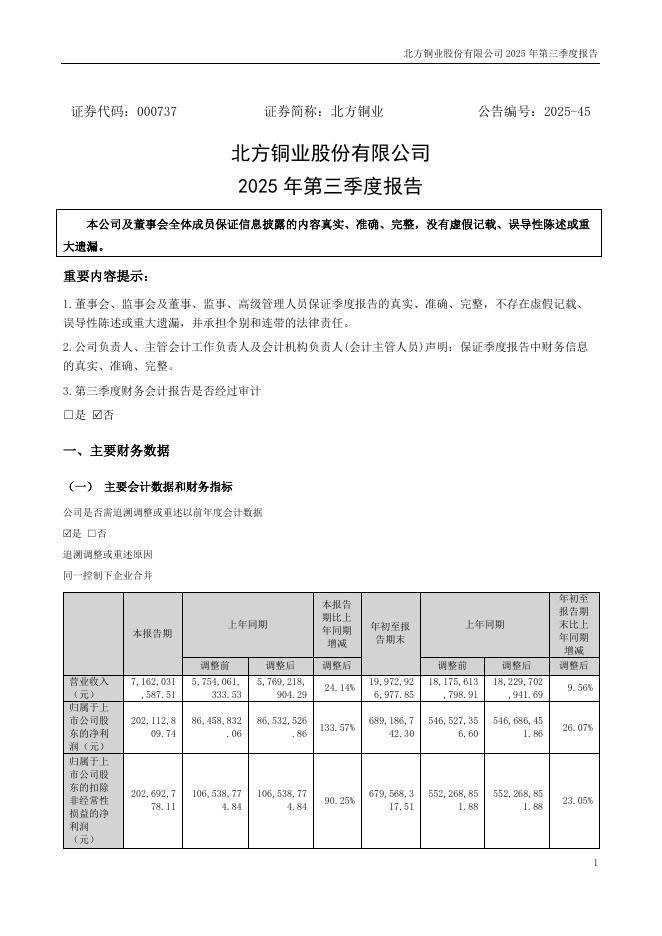 000737-北方铜业:2025年三季度报告.pdf