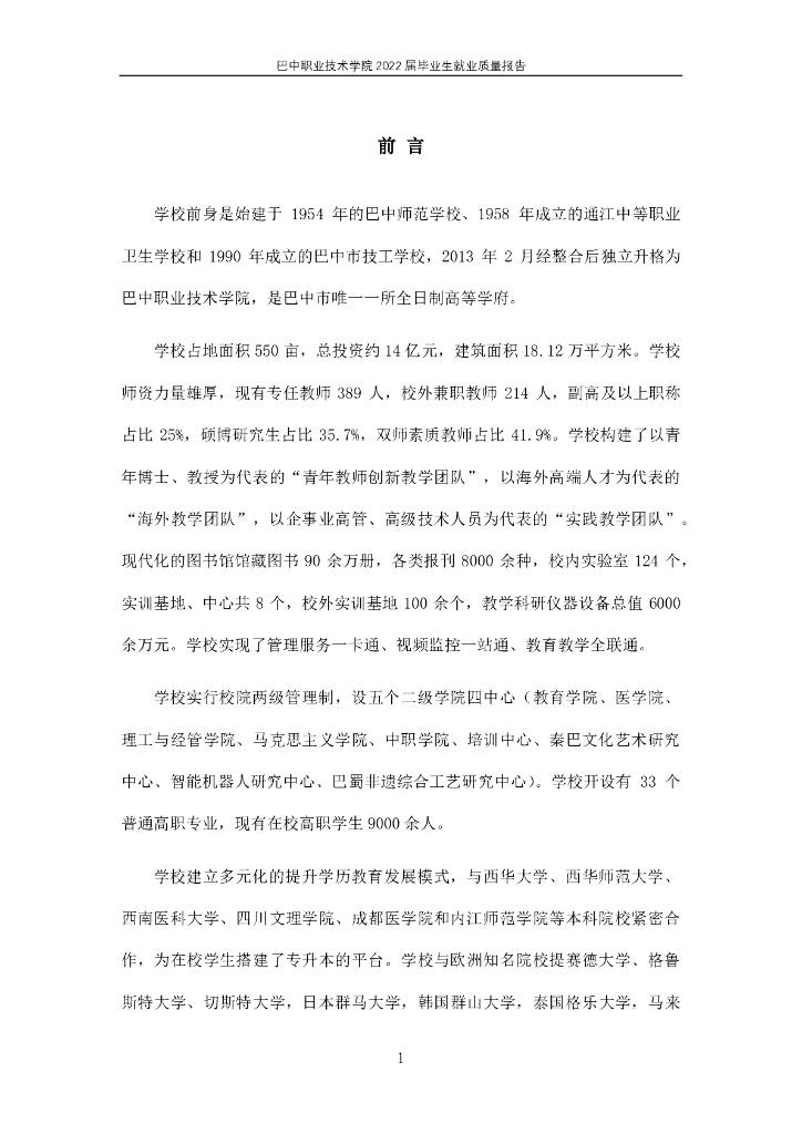 巴中职业技术学院2022届毕业生就业质量报告.pdf