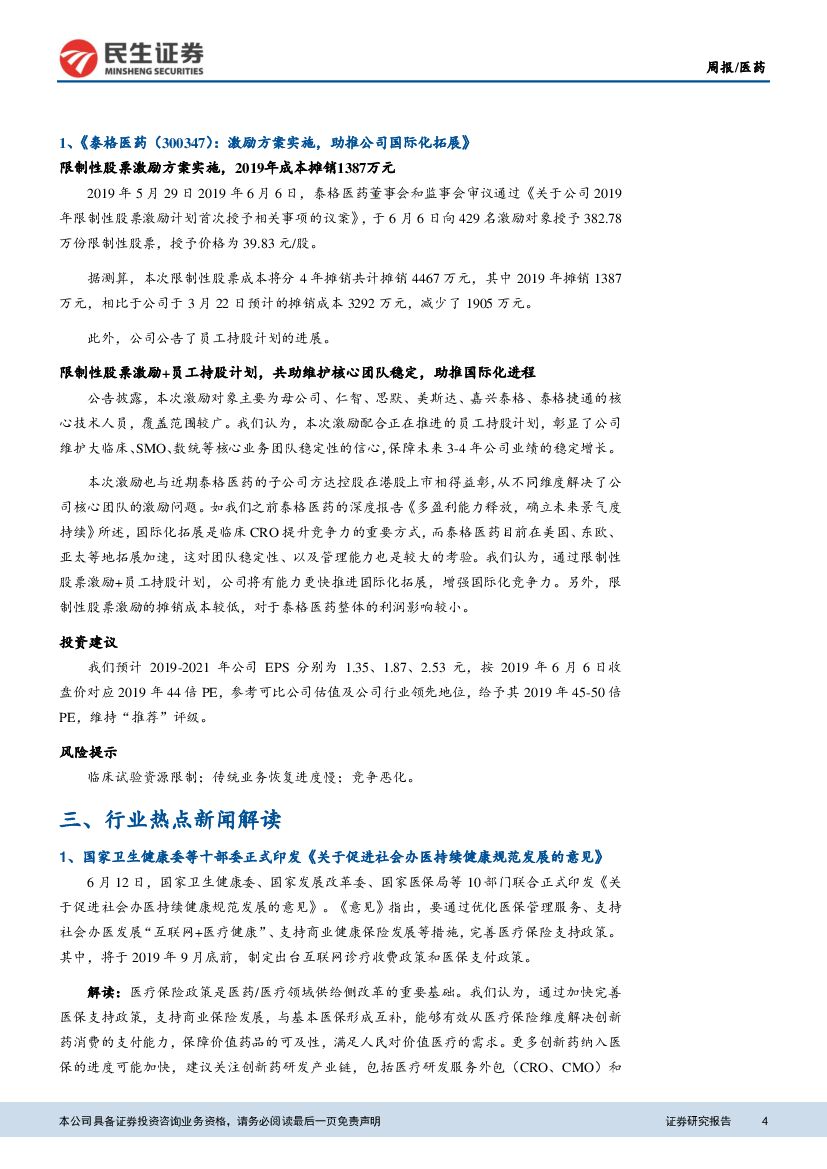 民生证券:医药周报:泰格医药限制性激励方案实施,医保政策完善.pdf