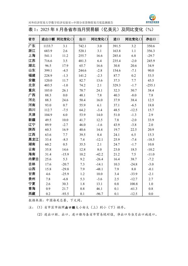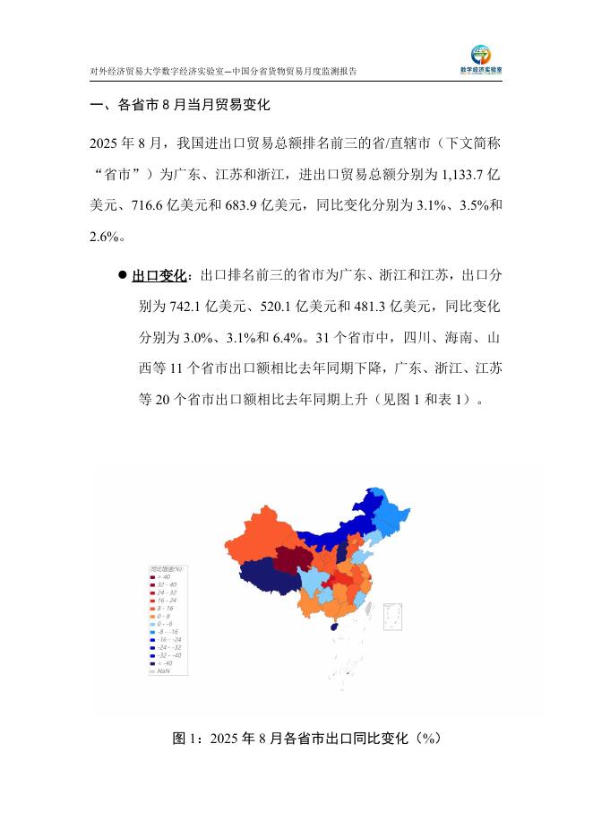 对外经济贸易大学:中国分省货物贸易月度监测报告(2025年1-8月).pdf