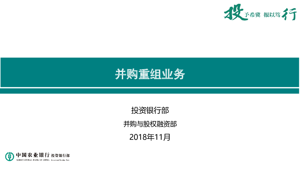 中国农业银行:国有银行投行部并购重组培训课件.pdf