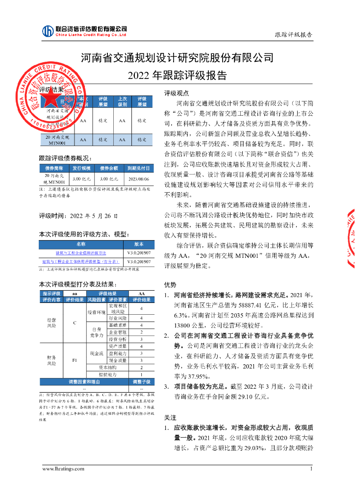 联合资信:河南省交通规划设计研究院股份有限公司2022年跟踪评级报告.pdf